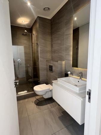 This impeccably designed apartment seamlessly melds a contemporary open-plan kitchen with integrated appliances , spacious lounge/dining area, setting the stage for effortless entertaining. Boasting two exquisite bedrooms, each graced with ample closet space ( including Linen and broom cupboard) , this residence offers the perfect blend of elegance and functionality. The master bedroom treats you to the convenience of a sleek shower while the second bathroom offers the indulgence of a bath.