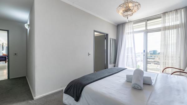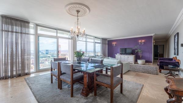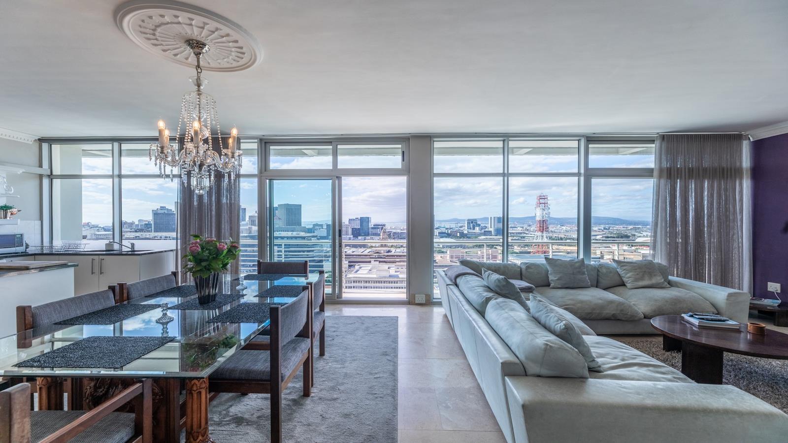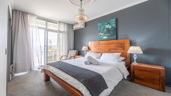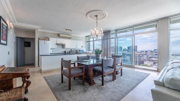 Experience Cape Town at its finest from this stunning north-facing, air-conditioned penthouse, offering uninterrupted views of the city skyline, harbour, and ocean through expansive floor-to-ceiling windows.