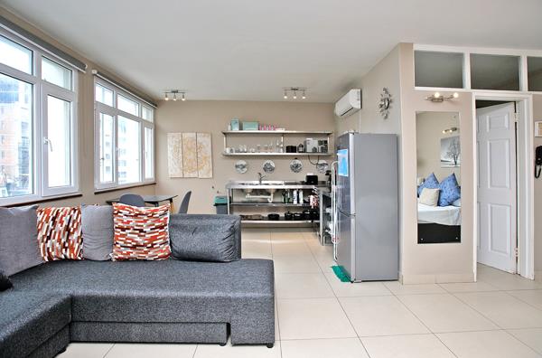 The apartment is filled with natural light while offering views of the iconic Cape Town skyline. Double-glazed windows help to reduce city noise and retain warmth during the winter months.