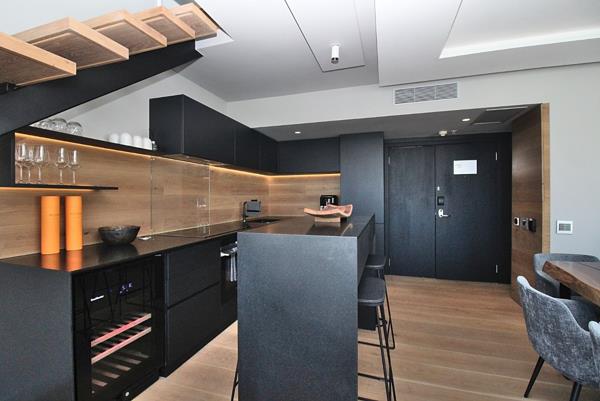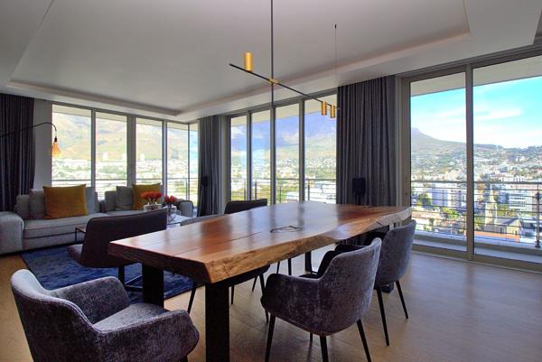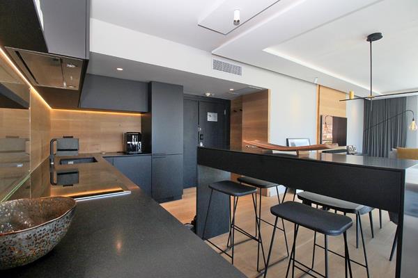 This very stylish 2-bedroom apartment on the 18th floor of the Pepper Club is located in Cape Town''s trendiest area. Every detail has been carefully considered to create a timeless and sophisticated space. As you open the door, your eyes are drawn to the stunning views of the City Bowl and Table Mountain. Natural light pours in through the expansive floor-to-ceiling sliding doors that surround the apartment. The kitchen, subtly designed, features top-of-the-line built-in appliances. With indirect lighting, soft-close drawers, high-quality finishes, and a breakfast nook, it offers everything you could need. The solid wood floors extend throughout the open-plan living, dining, and kitchen area.