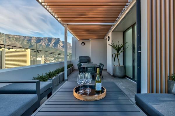 Experience luxury living in this breathtaking 3-bed, 3.5-bath penthouse. Spanning three levels, this stunning home offers open-plan living and dining, a sleek kitchen, and cozy day-bed nooks. The main bedroom features a private reading nook and en-suite. Soak up the views of Table Mountain & Atlantic Ocean from every level, or unwind on your private rooftop terrace. Enjoy access to the buildings communal rooftop pool, entertainment area, and gas BBQs all with unbeatable views.