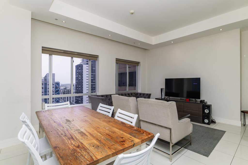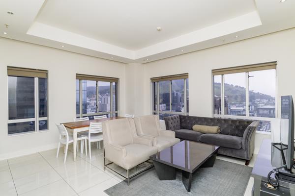 This modern 2 bedroom, 2 bathroom apartment is located in the esteemed Pullman Hotel in Cape Town City Centre, providing unparalleled views of the city skyline.