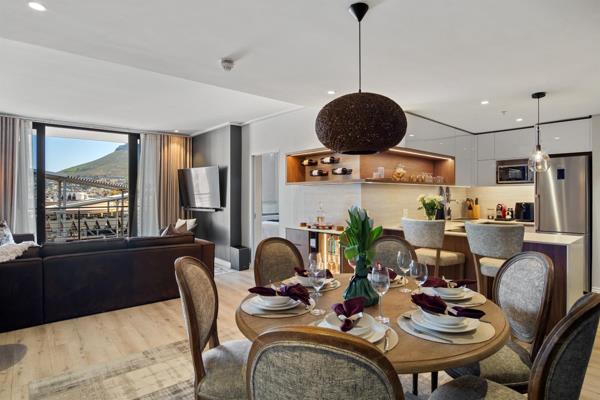 Located on the 22nd floor of Cape Towns tallest residential building, this fully renovated and furnished apartment at 16 on Bree offers breathtaking views of Table Mountain, Lions Head, and Signal Hill.