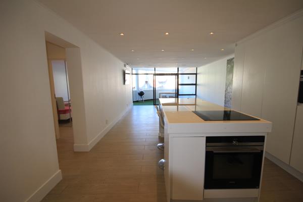 State of the Art open plan kitchen boasts solid counter tops free standing island with ample cupboard space. The open plan kitchen to the living area, leading to a nicely sized balcony with views of Table Mountain. The access from the sliding doors - creates a feeling of extra space. Both generously sized bedrooms have ample BIC with the main bedroom leading to the balcony and double sized wet room shower .