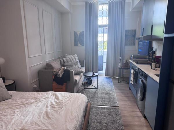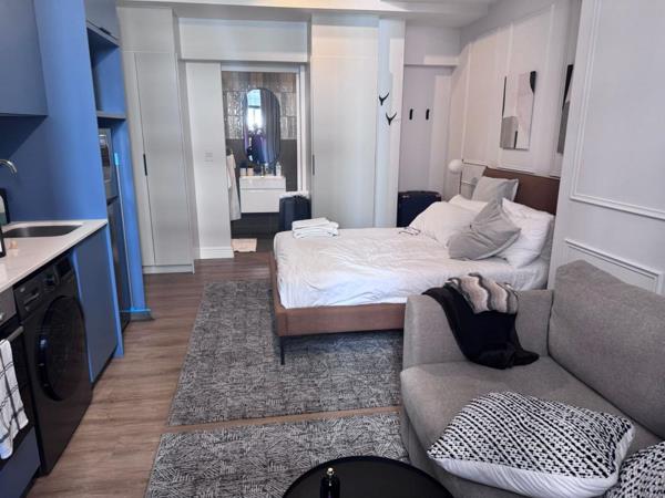 Stylish, fully furnished studio apartment in a secure complex, featuring built-in cupboards, main en-suite, open-plan lounge and dining, and a modern kitchen with postform countertops, undercounter oven, hob & extractor fan. With laminated flooring, air-conditioning, stairs & lift access, this turnkey unit is Airbnb-friendly, ideal for short- and long-term letting with potential nightly rates of R2,000 R2,500, and vacant on transfer offering both comfortable living and instant rental income in a high-demand location.