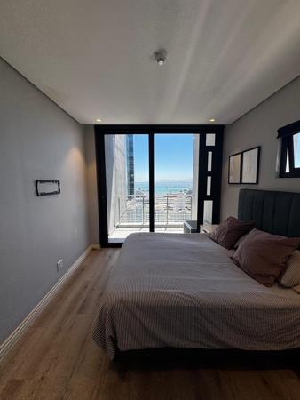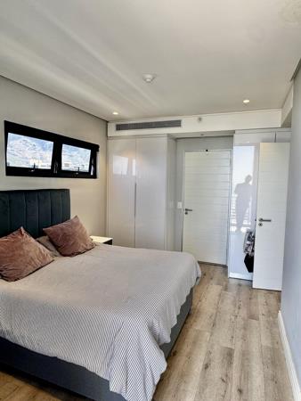 Two impeccably appointed bedrooms offer peaceful retreats, with the master suite featuring a lavish, meticulously crafted en suite bathroom. The unit includes two balconies totaling 13sqm, one showcasing an exceptional sea view stretching toward the stadium and Robben Islanda rare luxury in the building. A large main balcony (dimensions available on the building spec) further enhances the sense of space and connection to the surrounding landscape.
