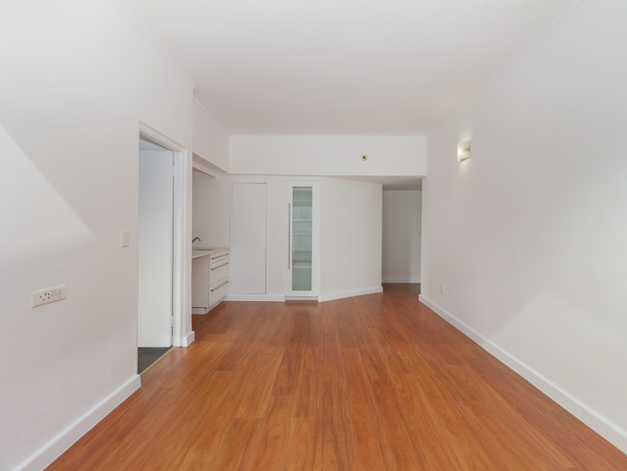 The large carpeted bedroom is bathed in light due to the large glass faade which extends around the corner to maximise the views. The bedroom enjoys a semi-open plan bathroom with bath and vanity in the bedroom, whilst the shower and toilet are private and enclosed. Air-conditioning.