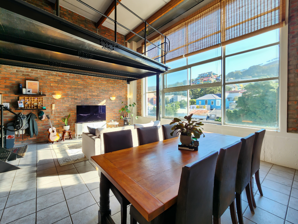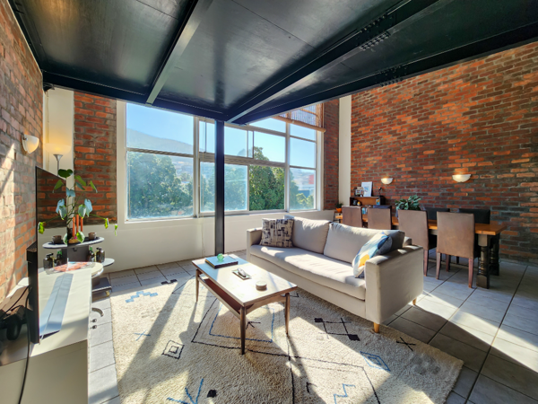 This spacious New York style loft apartment is the ultimate city pad. Flooded with natural light due to the generous windows, it has double volume vaulted ceilings with a generous mezzanine bedroom and study area. Downstairs is an open plan living room, dining room, and kitchen with built-in oven and hob. The lower level is completed by a bathroom with shower over the bath. Air-conditioning. Open brick and exposed steel add to the modern industrial feel. Beautiful North-westerly views over Bo Kaap & Signal Hill.