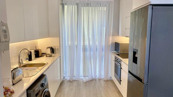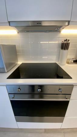 Open plan lounge and kitchen (Smeg oven/ hob /extractor) with floor to ceiling sliding doors in the lounge and both bedrooms. High ceilings throughout
