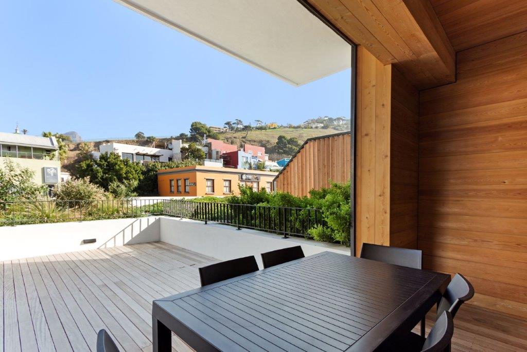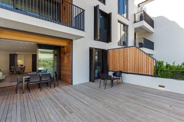 Waterkant Street facing with an exceptional large terrace with wooden decking and planter boxes with drip feed irrigation that creates a lush & green garden feel