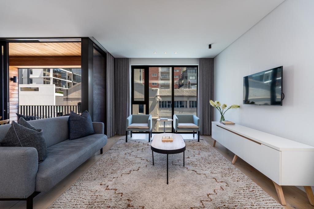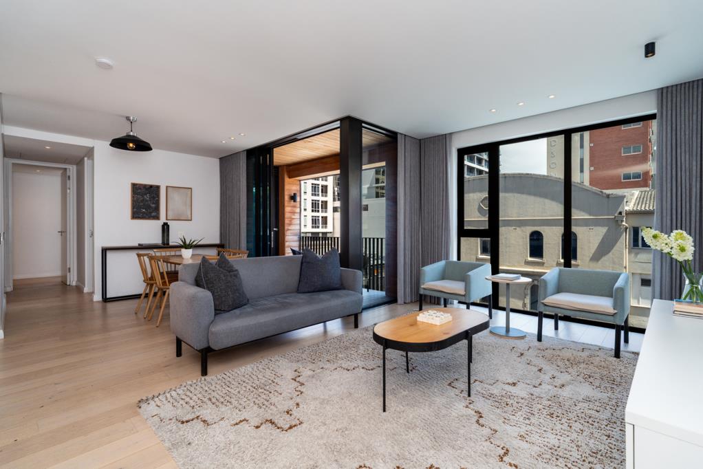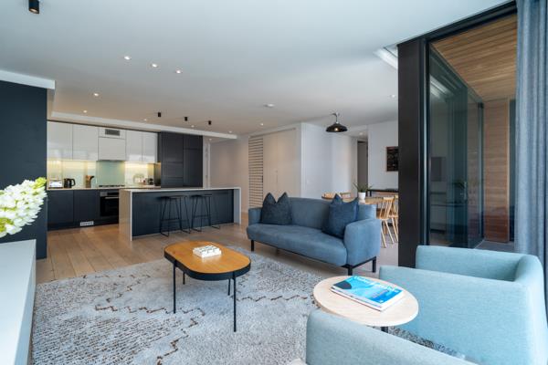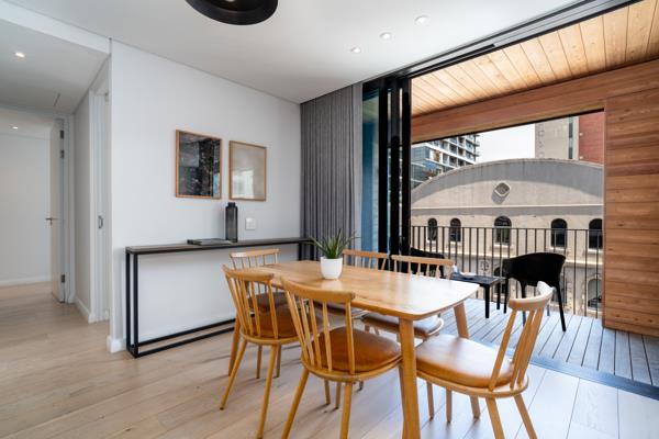 Open plan kitchen/dining & living area with floor-to-ceiling sliding doors opening onto an inviting sunny terrace, that interacts well with the colourful surroundings of this historical niche market.