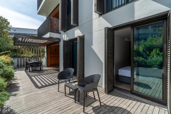 SPACIOUS 2ND LEVEL - INNER COURTYARD FACING, TWO BEDROOM APARTMENT WITH AN EXTRA LARGE L-SHAPED TERRACE, IN THE MULTIPLE AWARD WINNING OLD CAPE QUARTER