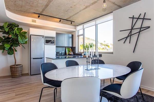 Step into a beautifully decorated, fully furnished two-bedroom, two-bathroom apartment featuring clean lines, floor-to-ceiling windows, and a seamless flow onto a spacious garden terrace with views of the V&A Waterfront and Signal Hill.