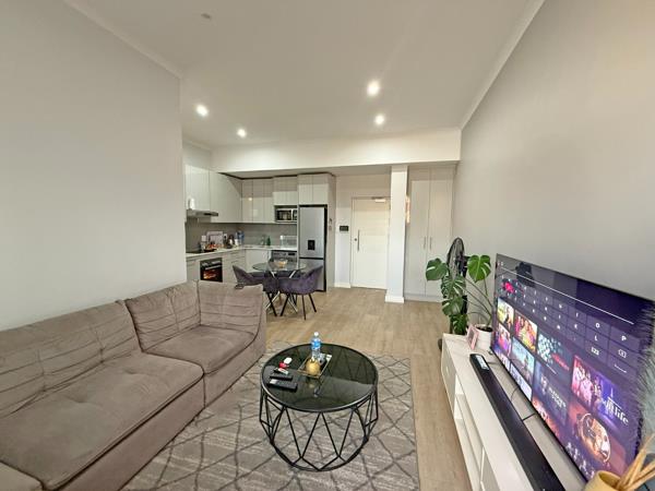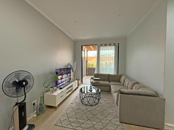 This stylish 2-bedroom, 1-bathroom apartment features a light-filled open-plan living area that flows seamlessly into a well-equipped kitchen and opens onto a spacious private patio perfect for outdoor dining, morning coffees, or weekend braais.