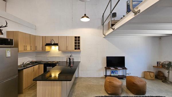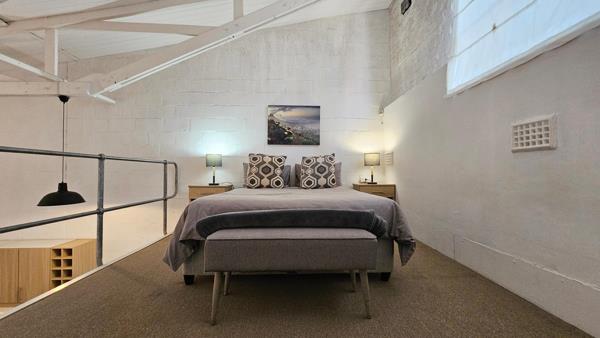 A modern kitchen and open plan lounge make for plenty of space for those travelers wishing to spend a bit more time on their own meals. While spacious, the apartment is not overwhelming, making it easy to clean. A tough epoxied concrete floor makes cleaning easy and the industrial aesthetic offers a neutral pallet for your decor. A mezzanine loft bedroom comfortably fits a king-size bed and a large cupboard.