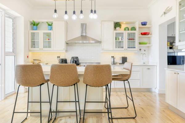 The main living space is located on the middle level and flows effortlessly from lounge to dining and kitchen, opening out onto the pool and gardenideal for entertaining or quiet relaxation. Upstairs, youll find three well-sized bedrooms and two bathrooms, all offering exceptional light and outlooks. An indoor fireplace adds warmth and charm during cooler months, while the sparkling pool invites you to cool off on sunny Cape Town days.
