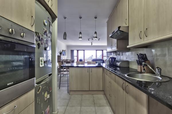 The spacious open plan living/dining area enjoys air conditioning and leads seamlessly through French wooden sliding doors to an expansive tiled balcony - perfect for entertaining. The living area and main bedroom are north facing overlooking the sports field and enjoys spectacular views across the city and towards the Atlantic Ocean.