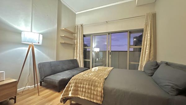 Situated within the sought-after Upper East Side development, the apartment features an open-plan layout that maximizes space and natural light. The living and sleeping area flows effortlessly onto a private balcony, offering a peaceful outdoor escape with views over the vibrant Woodstock/Salt River precinct.