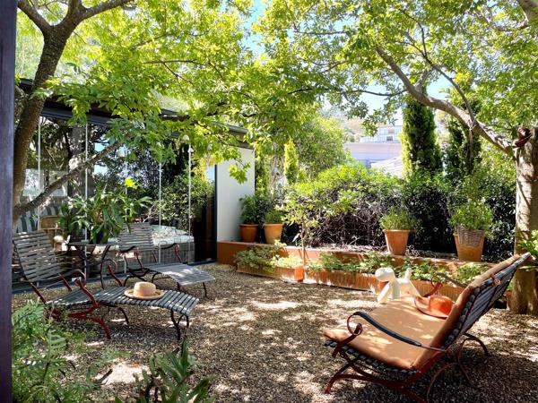 The kitchen, with its wide sliding windows onto the courtyard, allows one to interact with guests, as well as around its central island. The scullery with granite countertops has ample shelving space. This level also features staff accommodation, and a large storeroom. The large main suite upstairs, facing north-east, has plenty of built-in cupboards and a full bathroom leading onto a private balcony to enjoy your morning coffee, watching Cape Town come to life. The second bedroom, with the most beautiful light through the north and west-facing shuttered sash windows has built-in cupboards. A large family bathroom is shared by the second and third bedrooms, the latter of which is currently the owners home office, facing Table Mountain and Lion''s Head.