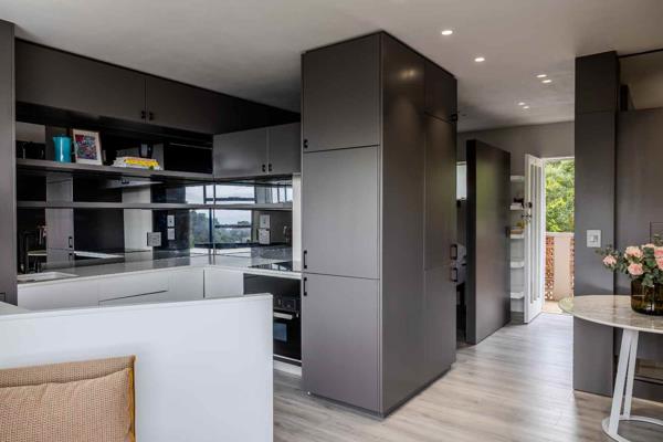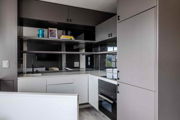 The living area is inviting and versatile, with a dedicated dining nook perfectly positioned to take in the outlooks. Cleverly defined, the bedroom area offers a private retreat with ample built-in cupboards and space for a double bed, maintaining the flow of the apartment while ensuring comfort.