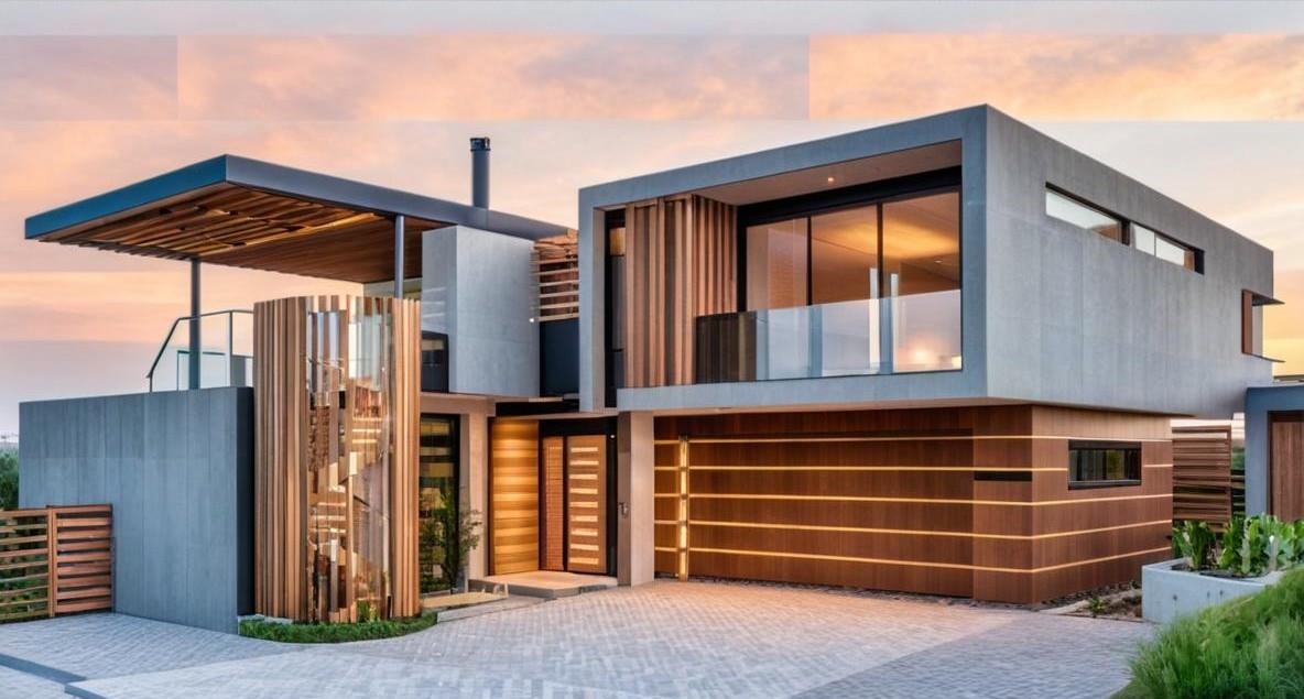 The plans in black and white are the actual plans. Contact me for the approved plans for a Modern 4 bedroom house North West oriented to create wind free zones and incorporate as much natural light as possible. The driveway has a gate and is shared with the neighbour.
