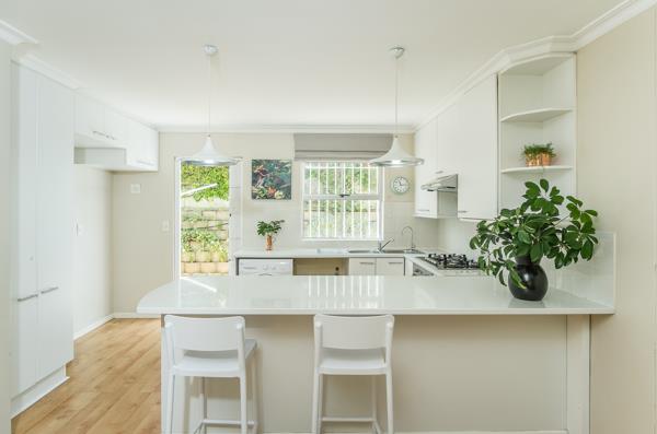 The kitchen is well-equipped with a gas hob, electric oven, pantry, and ample built-in cupboards. Outside, enjoy a low-maintenance, enclosed front garden and a private rear courtyard with a washing line.