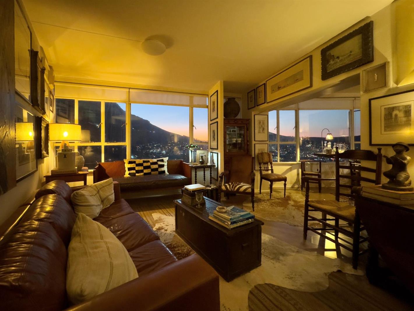 Enjoy sweeping panoramic views of Table Mountain and Lions Head from this 12th floor apartment, with the sun setting perfectly between the two peaks each evening, painting the sky in stunning shades of orange. The large windows fill the apartment with natural light throughout the day, and youll find photos in the listing showcasing the views from morning to sunset.