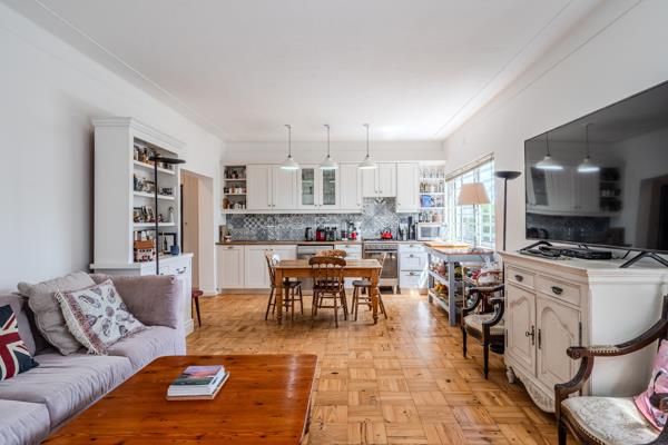 This ground-floor, 100m2 apartment offers three well-sized bedrooms, a full bathroom, an open-plan dining and living area, and a renovated kitchen with excellent morning light. The natural flow is effortless, with sunshine streaming into the living areas in the early hours, and warm evening light filling the bedrooms later in the day the perfect Cape Town balance.