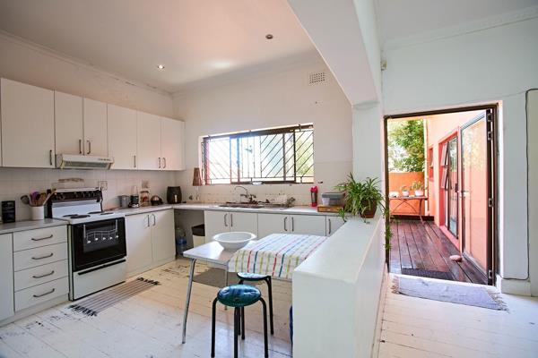 Charming character home with outstanding views. Semi-detached double storey home with perfect blend of comfort and style, currently let as an income generator to six tenants. Enjoy the convenience of a dedicated study area, ideal for remote work, alongside a cozy lounge with pressed ceilings. This home features an open plan kitchen with formica units, a spacious living room leading onto a sheltered deck, with stairs to a separate scullery in the cellar. A private, spacious guest bedroom, with built-in cupboards and en-suite bathroom, also leads to this deck. Another bedroom with sliding doors opens onto a small patio.