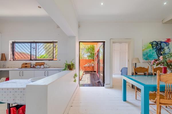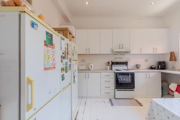 Ideal work from home space, alongside a cozy lounge with pressed ceilings. This home features an open plan kitchen, a spacious living room leading onto a sheltered deck, with stairs to a separate scullery in the cellar. A private, spacious guest bedroom, with built-in cupboards and en-suite bathroom, also leading to the deck. A third bedroom with sliding doors opens onto a small patio.