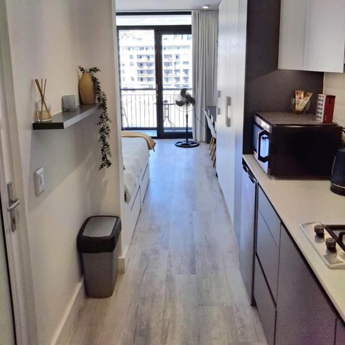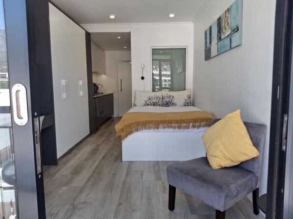 Discover this stylish studio apartment in the heart of Woodstock, offering sleek finishes, an open-plan layout, and uninterrupted views of Table Mountain. Ideal for professionals, it blends modern comfort with the convenience of city living.
