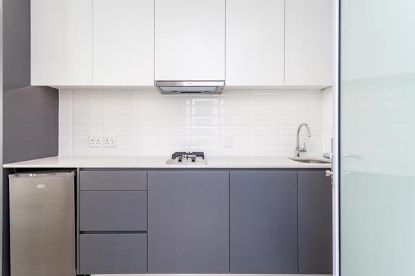 Sold semi-furnished with a TV, bed base, fridge, curtains, and microwave oven, this unit is move-in ready or guest-ready from day one.