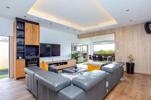 Step outside to a covered entertainment area with a built-in gas braai, perfect for summer gatherings. Adjacent is a stunning indoor-outdoor pool surrounded by plush chill zones and a gourmet BBQ station with gas and wood-fired optionsa true oasis for hosting unforgettable moments.