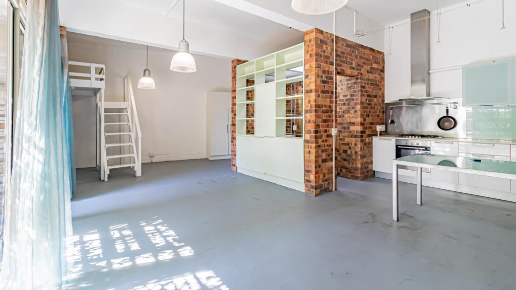 Step inside and experience the spacious, double-volume interior. The open-plan living area exudes industrial-chic charm, with exposed brick walls adding character and warmth. A sleek, modern kitchen features high-end finishes, a gas stove, and a dedicated plumbing point. The cleverly designed layout includes an elevated sleeping area, maximizing space while maintaining style and functionality.