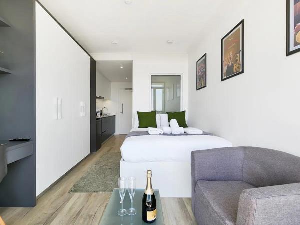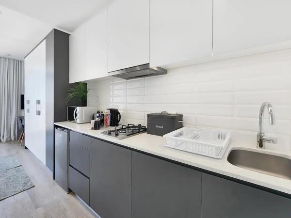 This beautiful studio apartment is located along the new Woodstock hub of the city. The apartment is on the 7th floor with lots of north sun and harbour views. Its located in a 24hr manned apartment building, with great communal areas that you can make use of including a pool and BBQ area! This is an ideal location for the work-travelling tourist or young executive close to the Mother City to use as their home base- central enough to be a quick Uber ride to the City Centre and other attractions for your after 17:00 exploring! Also excellent opportunity for an investor with great rental return. The famous Biscuit Mill market is a few minutes away and large selection of restaurants are in the area too.