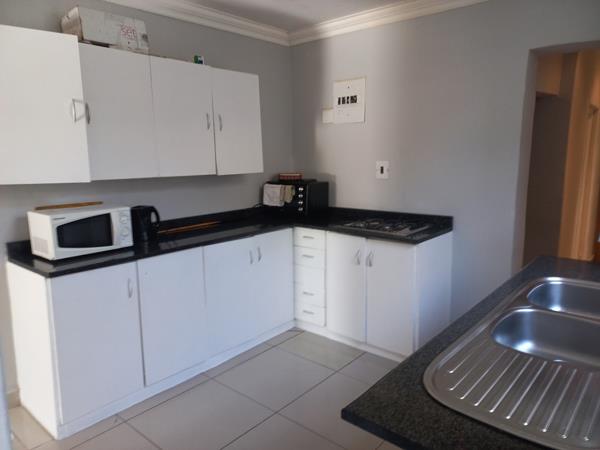 The modern kitchen features built-in-cupboards and a laundry area. Out the back door, find the neat back courtyard ideal for braais and family entertainment.