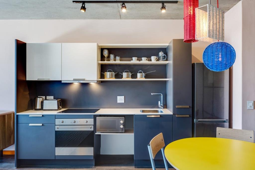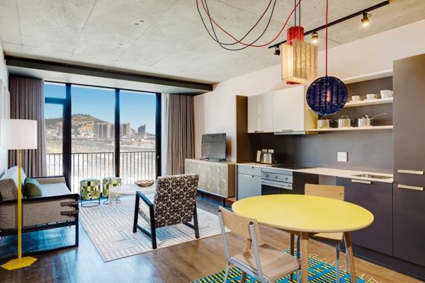 Inside, youll find an open-plan kitchen and living space with quality finishes, high ceilings, and large windows that invite in natural light and views of Table Mountain or the cityscape. Both bedrooms offer built-in cupboards, while the kitchen comes fitted with a stove, oven, and space for appliances.