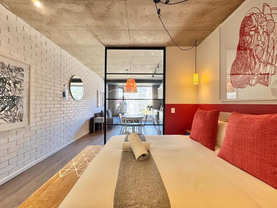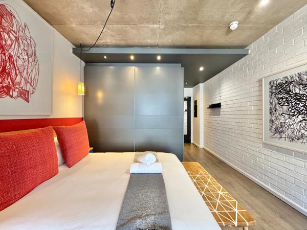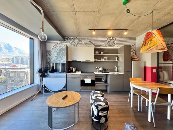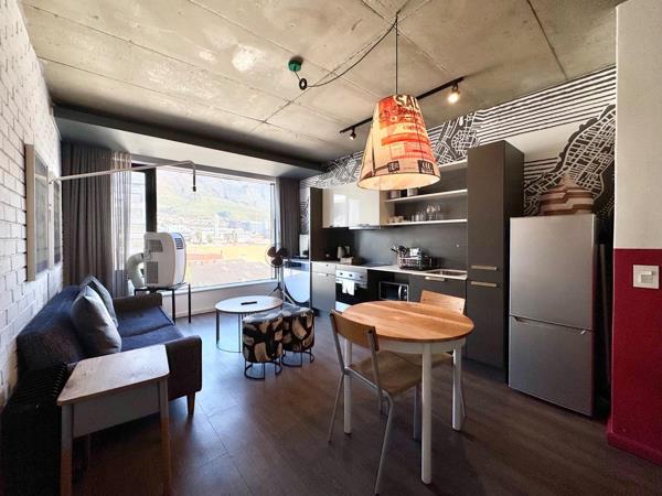 Welcome to this sleek, light-filled studio apartment nestled in the ever-popular WEX1 development, right in the center of Cape Towns most dynamic district, Woodstock. Located on an upper level, the unit boasts an abundance of natural light and offers breathtaking mountain vistas, providing a serene backdrop to your daily routine.