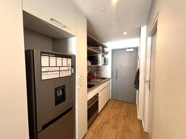 The apartment boasts a clean and neat aesthetic throughout, with a light and airy ambiance enhanced by a sliding glass door in the bedroom area. This feature not only fills the space with natural light but also offers a beautiful, unobstructed view of Table Mountain a standout feature for those who appreciate scenic surroundings. The open-plan layout includes a modern kitchen fitted with sleek finishes, ample cupboard space, and a seamless flow into the living and sleeping area, making efficient use of the space.The bathroom is equally modern, offering high-quality fixtures and a tasteful design that complements the apartments overall look.