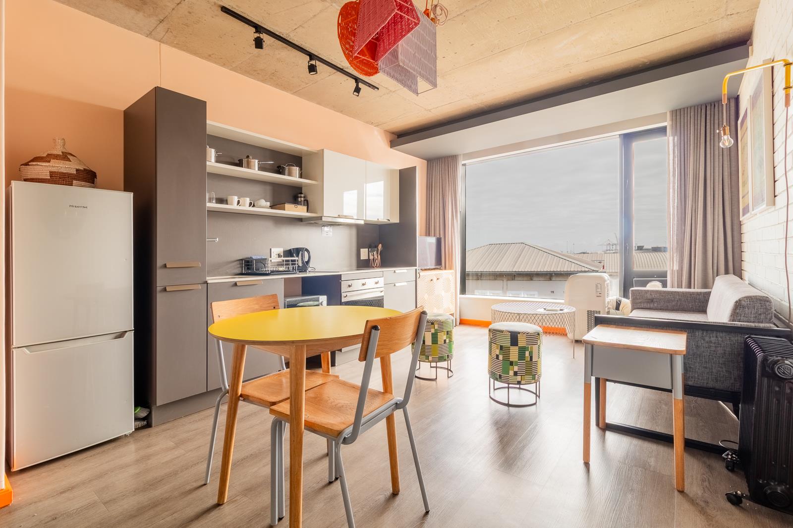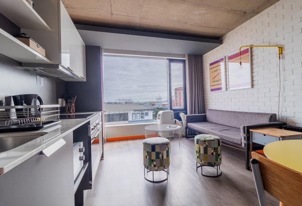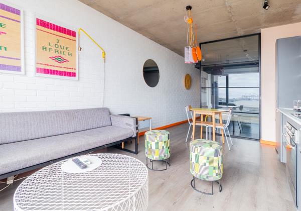Large windows invite natural light and frame captivating views of the Cape Town harbour, while the buildings premium facilities elevate daily living: a swimming pool, gym, 24-hour security, and secured parking. The vibrant ground floor precinct includes trendy eateries and boutique retailers, adding unmatched lifestyle convenience.
