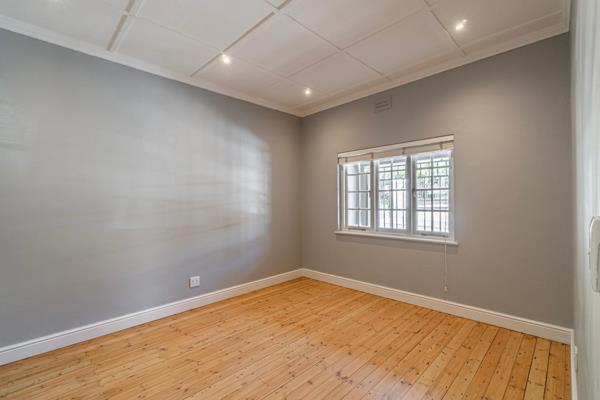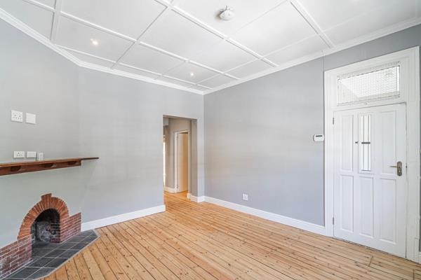 Set behind a welcoming front patio, the home opens into a cosy lounge where an original working fireplace forms the centrepiece. The warmth of the wooden floors continues throughout, creating a sense of continuity and old-world charm. From the lounge, a short hallway connects the main living spaces. On the left, youll find the tiled bathroom with a shower, basin, and toilet. Further along is the kitchen practical, light, and fitted with ample storage, a single basin, and plumbing for one appliance.