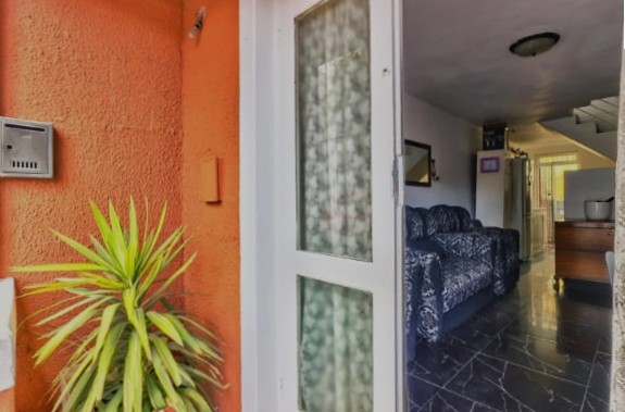 A beautifully tiled staircase which leads up to the bedrooms and a spacious family bathroom. The property is well secured, offering a safe and comfortable living space, complete with air conditioning and security gating.
