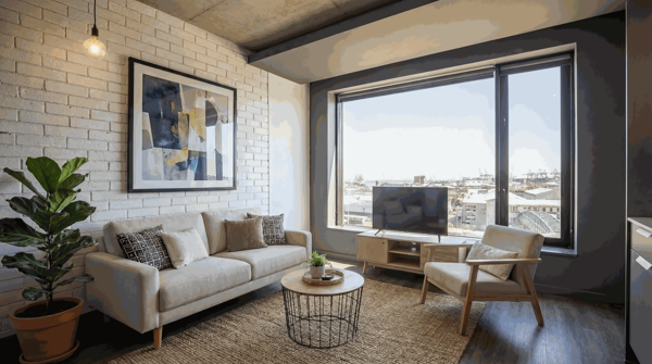 The property is located high up in the building and as you enter the unit you''re struck by the near floor to ceiling windows at the back of the unit and the panoramic views across the shipping docks and towards the ocean.