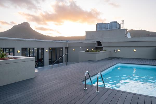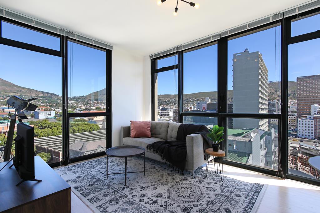 Situated high with the most breathtaking Lions Head and Table Mountain views, this stunning corner unit just has it all! Spacious, north west facing lounge/living area with panoramic views from all around. Large floor to ceiling sliding glass doors allowing for loads of natural light.