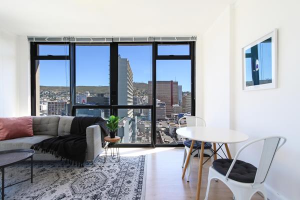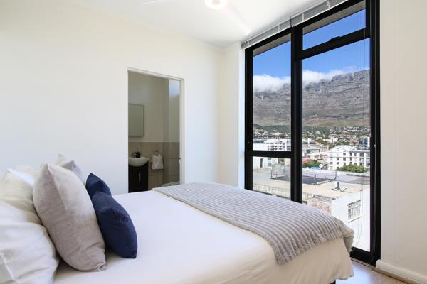 Thoughtful, clever allocation of space that maximises the entire layout. Compact functional kitchen that leads to cozy dining area where the breathtaking views and be admired too. Bedroom faces Table Mountain. En suite bathroom with large walk in shower.