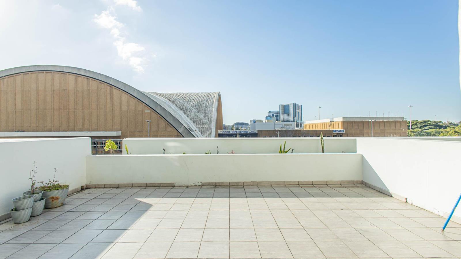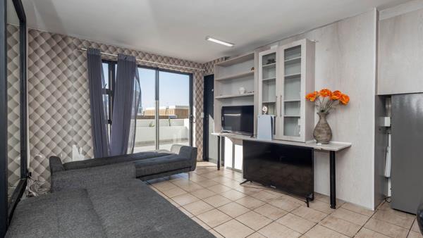 Residents enjoy access to a rooftop pool with panoramic city and mountain views, a well-equipped gym, braai facilities, 24-hour security with controlled access, and on-site laundry services.