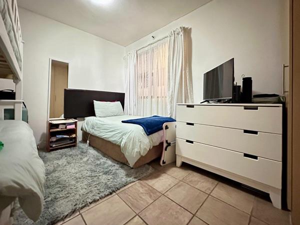The kitchen is designed with practicality in mind, fitted with two water points to accommodate both a washing machine and dishwasher. The entire apartment is tiled throughout, making it easy to maintain, while both bedrooms include built-in cupboards, ensuring ample storage and functionality.