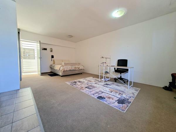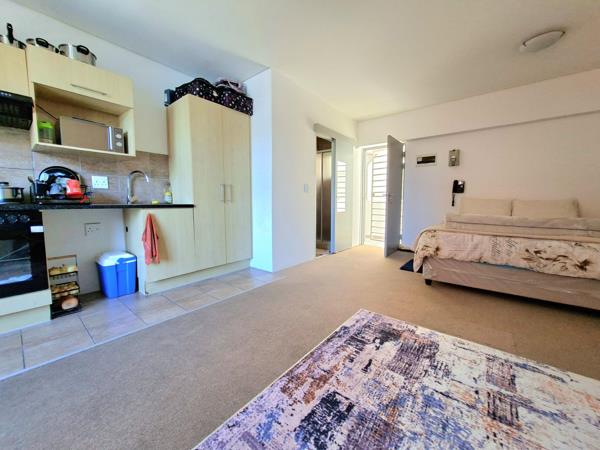 This studio apartment offers comfort, convenience, and beautiful views over Cape Town. The open-plan layout features a spacious living area, a newly updated kitchen with a stove, and a bathroom.