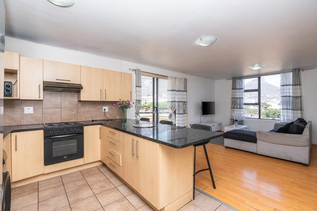 This spacious corner apartment enjoys exceptional natural light, sweeping mountain views, and a generously sized balcony. The well-designed kitchen is plumbed for either a washing machine or dishwasher, with the convenience of a full laundry facility within the building. Both bedrooms comfortably accommodate double beds and include built-in cupboards the main bedroom showcases beautiful views of Lions Head and Signal Hill. A neatly appointed bathroom with a shower-over-bath sits just across the passage.
