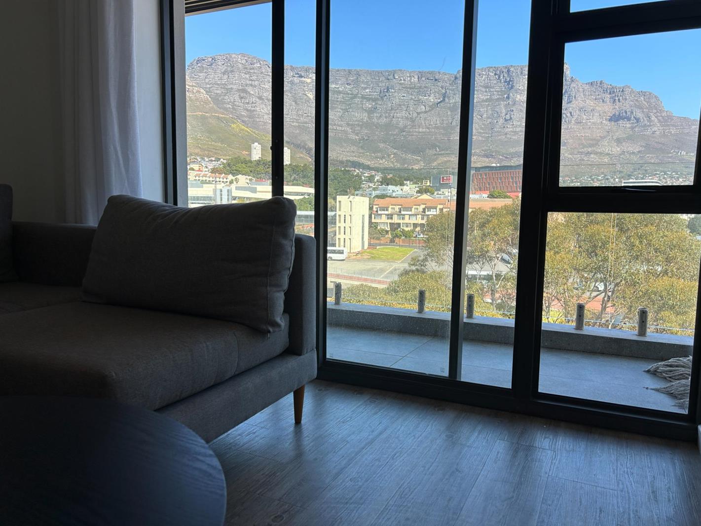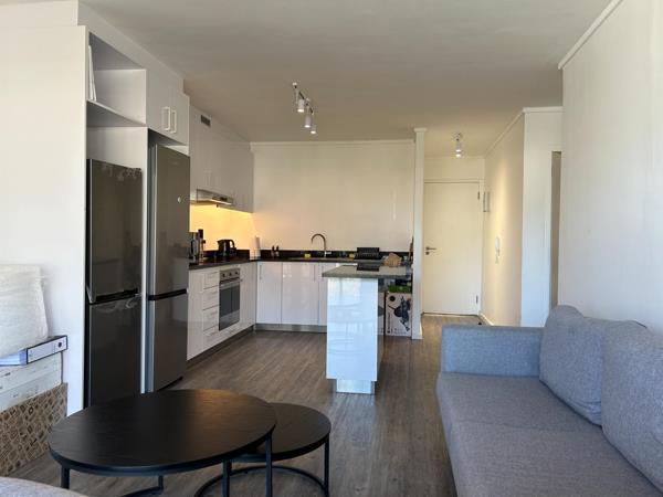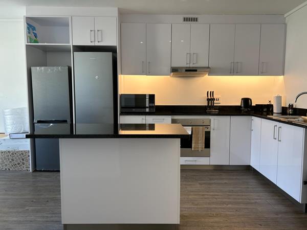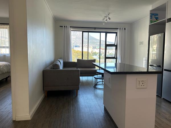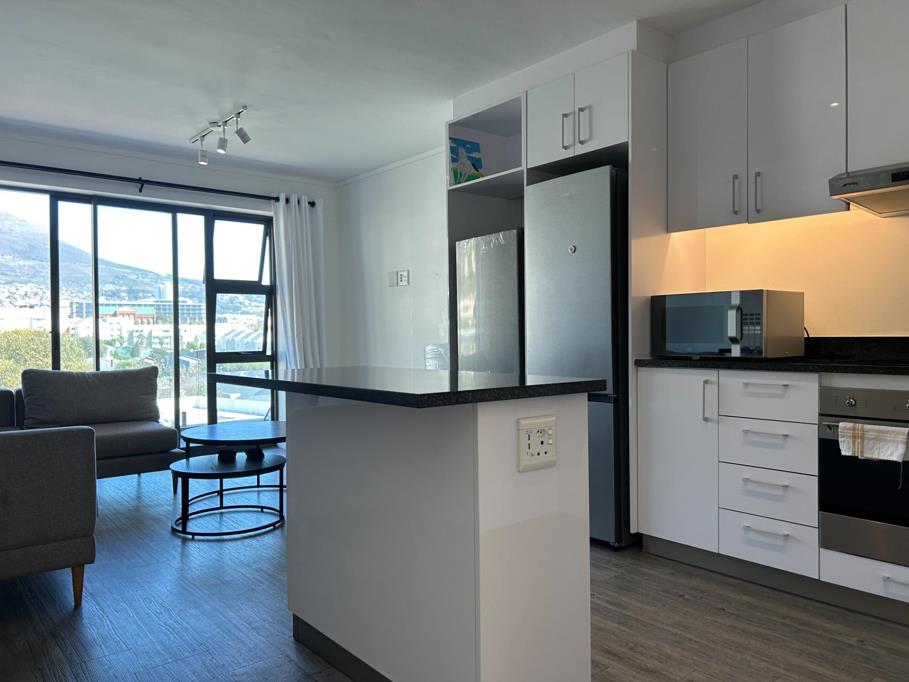 Situated on the top floor, enjoy uninterrupted views of Table Mountain, with floor-to-ceiling glass windows with a clear balcony, allowing for an abundance of natural light and an open, airy feel. Two bedrooms, (MES has a bath and second bathroom has a shower). Fitted with a smeg oven and the kitchen has space for a washing machine and dishwasher.